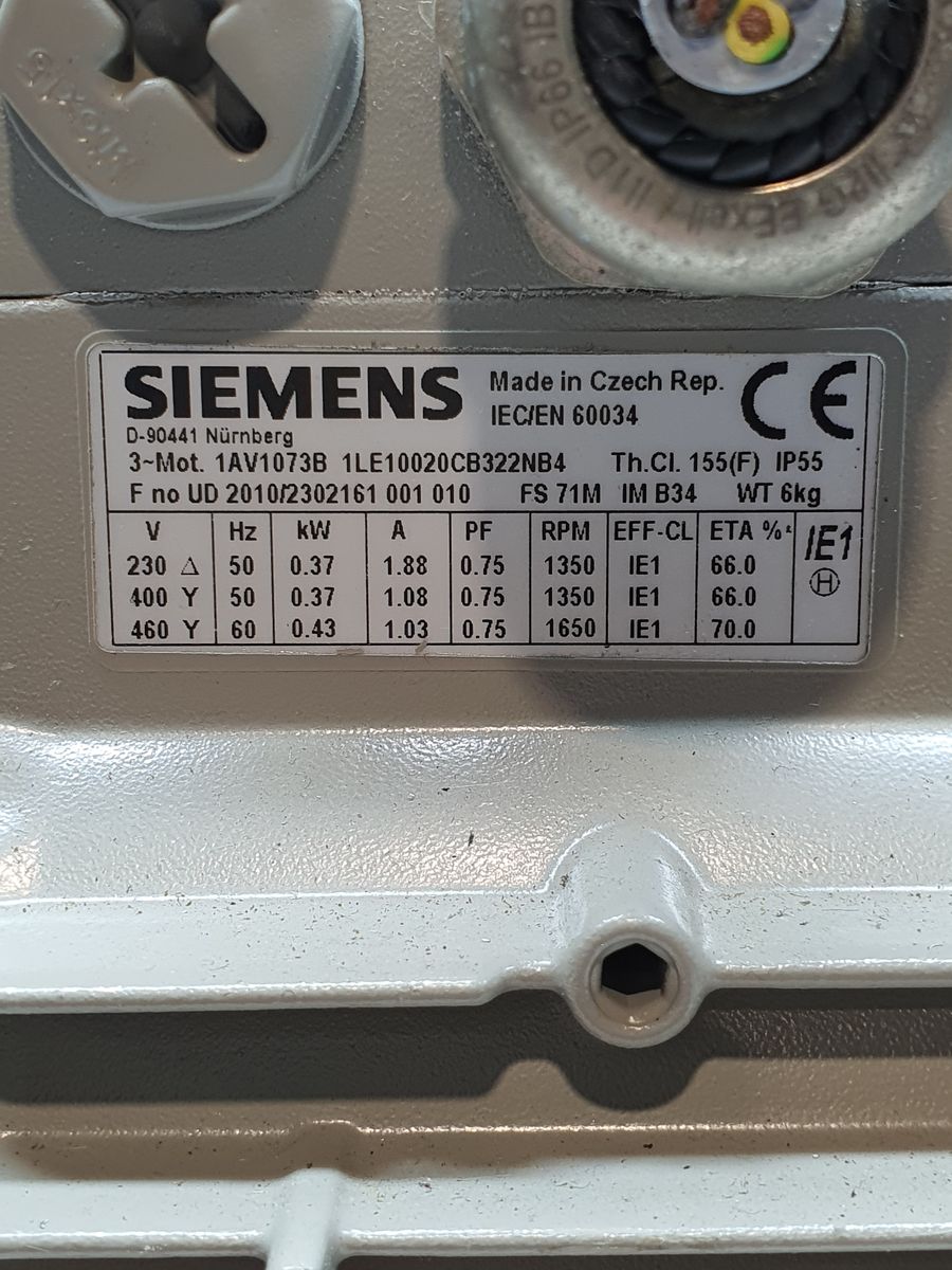 230 V Δ (Delta) 50 Hz 0.37 kW 1.88 A 0.75