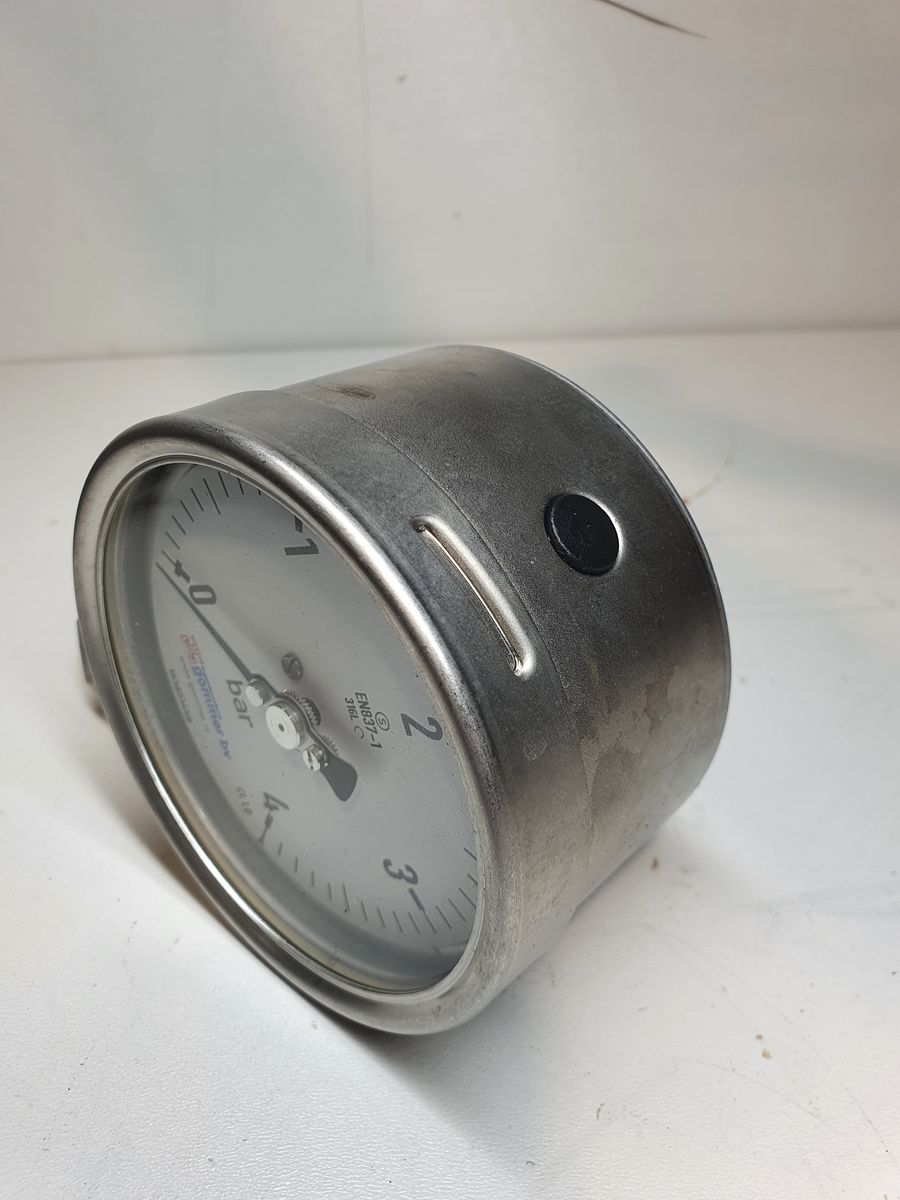 Dit product is een hoogwaardige industriële drukmeter, ontworpen voor het betrouwbaar meten van lage drukken tot 4 bar. De meter is vervaardigd volgens de EN837-1 norm voor Bourdonbuisdrukmeters en is voorzien van 316L roestvrijstalen onderdelen (Bourdonbuis, fitting en aansluiting) voor uitstekende corrosiebestendigheid in veeleisende omgevingen. De wijzerplaat met een nominale diameter van 100 mm biedt een duidelijke en gemakkelijk afleesbare meting, terwijl het gelaagde veiligheidsglas de gebruiker beschermt bij overdruk. De meter wordt geleverd met een schroefdraadaansluiting aan de onderzijde (doorgaans G1/2B) voor eenvoudige installatie op leidingen, vaten of procesapparatuur. EN837-1 meters zoals deze worden veel gebruikt voor het visueel bewaken van procesdruk in vloeistoffen en gassen waar een robuuste constructie en nauwkeurigheidsklasse CL1.0 vereist zijn.