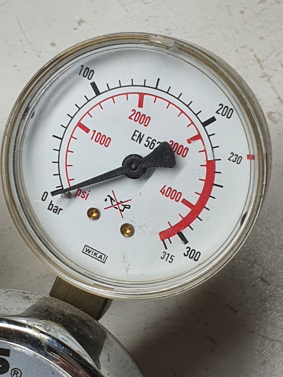 Model 825 Single Gauge Regulator with Pre-set Outlet Pressure to 15 Bar for use with Argon.